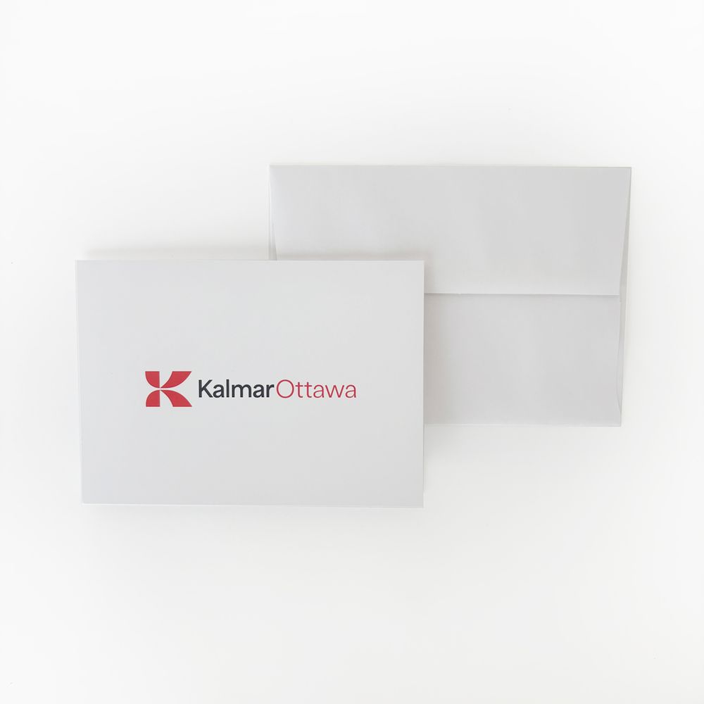 Logoed 5 X 7 Kalmar Ottawa Notecard with blank inside and blank envelope.