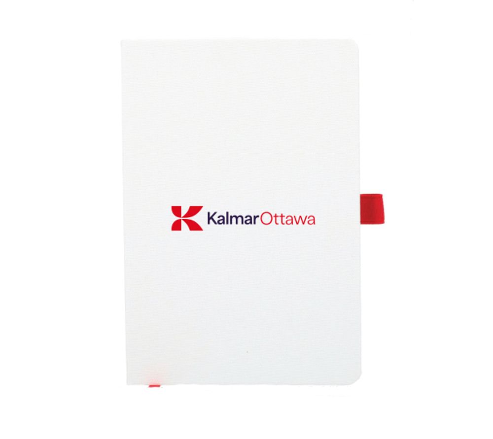 5.5'' x 8.5'' FSC® Recycled Bamboo Fiber Bound Notebook features a bamboo fiber fabric cover with colored elastic closure and ribbon page marker. Includes 80 sheets of FSC® recycled white lined paper.