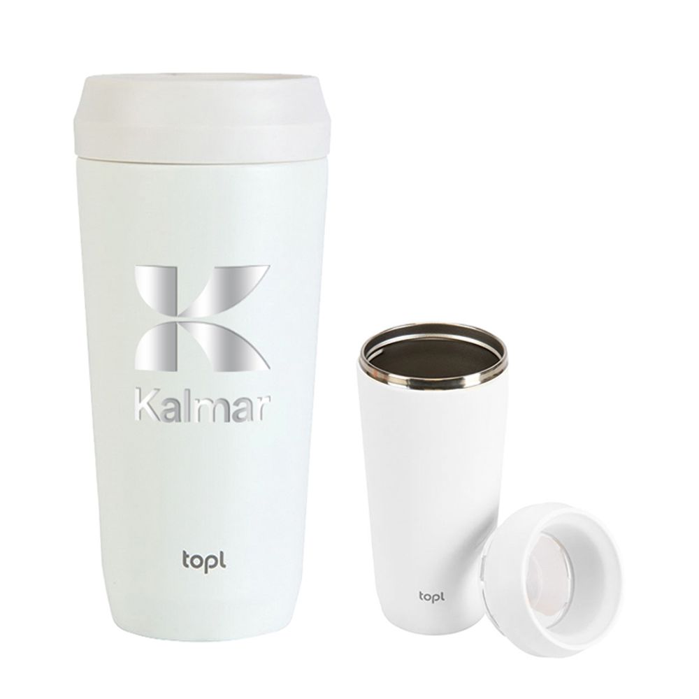 The 16 oz. TOPL® Travel Cup features a double wall vacuum insulated body made from premium, eco-conscious 18/8 recycled stainless steel to keep drinks hot or cold. With a powder-coat finish, it makes this tumbler sweat-proof and resists smudges. The 360° sipping lid crafted from recycled polypropylene allows you to drink or fill from any angle, while a secure locking system prevents leaks, making it perfect for commuting, walking, or multitasking. Drink and refill without removing the lid. Fully disassembles for thorough cleaning.